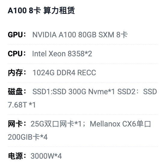 秦皇岛A100八卡算力租用价格